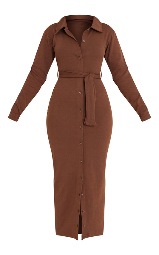 Stone Thick Rib Asymmetric Binding Detail Midaxi Dress