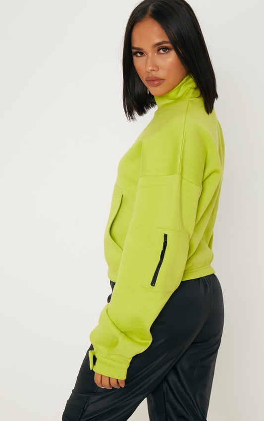 Neon Lime Oversized Zip Front Sweatshirt