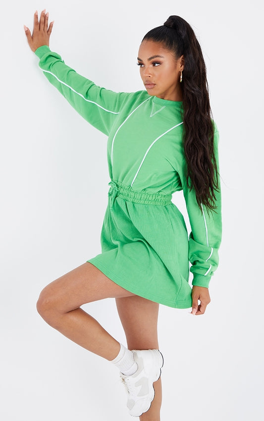 Green Contrast Stripe Sweat Jumper Dress