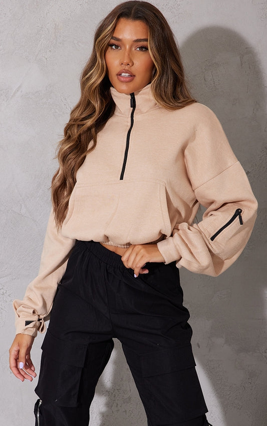 Sold outSand Oversized Zip Front Sweatshirt